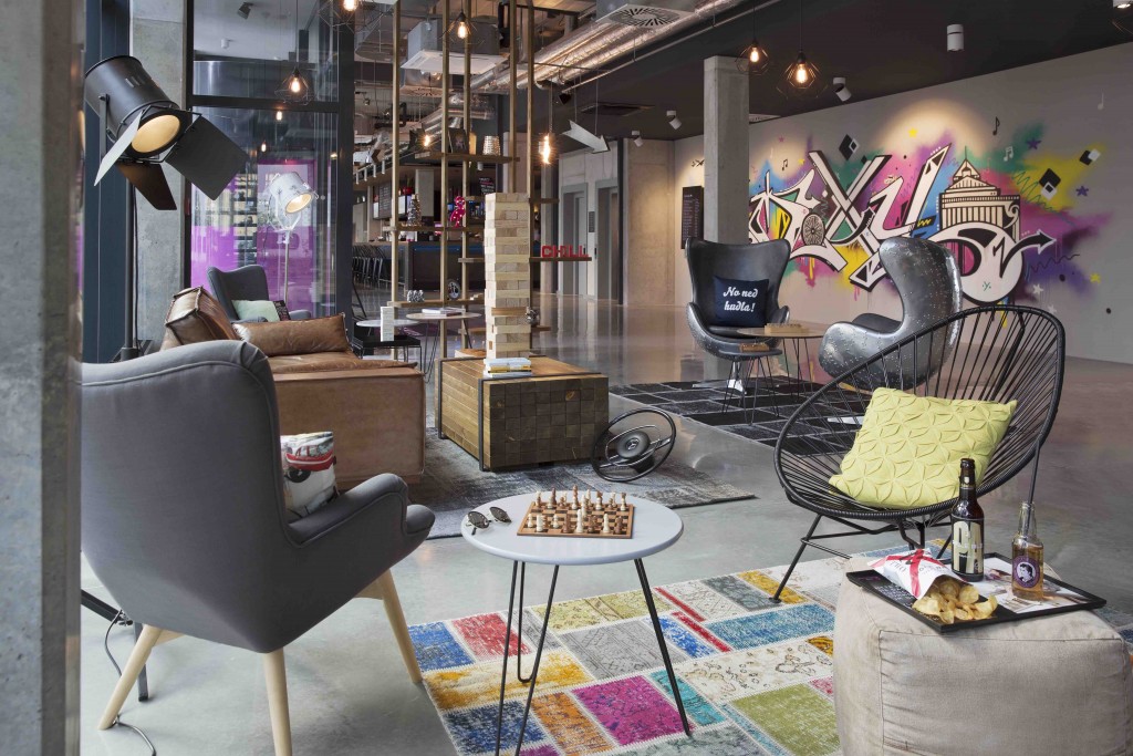 Architektonisch sind die Linien beim Moxy in Stuttgart ebenfalls klar: es gibt entweder Moxy Sleeper mit einem Queensize-Bett oder Double Moxy Sleeper mit zwei Twin-Betten. Bad, Dusche, ein bequemes Bett – alles da. Und: ein 42-Zoll-Flatscreen-Fernseher, Streaming, schnelles Internet und ein Fitnessbereich im Erdgeschoss. Alles, was der «Fun Hunter» von heute braucht. Und wem es auf seinem Zimmer zu einsam ist, der geht in das Herzstück des Hotels – die Lobby. Diese ist vielmehr als ein Empfangsbereich – sie ist gleichzeitig gemütliche Bibliothek, Bar und Lounge mit Musik. Das Vier-Zonen-Konzept ist typisch für Moxy. Der Bereich bietet viel Platz, sich zu vernetzen – und damit ist nicht nur das WLAN gemeint, sondern vor allem der Austausch und die Begegnungen, die während des Hotelaufenthalts zwischen den Gästen selbst aber auch mit der Crew entstehen.